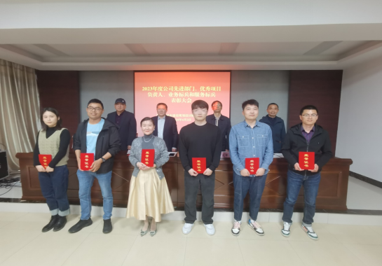 根據(jù)會議議程,公司董事、副總經(jīng)理王士才同志宣讀了《關(guān)于表彰2023年度公司先進部門、優(yōu)秀項目負責人、業(yè)務標兵和服務標兵的決定》,公司領導給獲得表彰的先進部門、優(yōu)秀項目負責人、業(yè)務標兵和服務標兵頒發(fā)獎牌和獲獎證書。