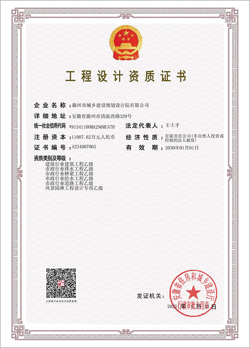 工程設(shè)計資質(zhì)證書(建筑、排水、橋梁、給水、道路、風景園林)
